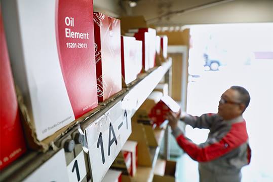 お客様のアップタイムの向上に貢献するUD純正部品を豊富に常備しています。ご要望の部品がない場合でも近隣拠点間ネットワークを駆使し、いち早く対応します。安定した部品の供給により迅速なサービス提供を可能にし、お客様のアップタイムを力強くサポートいたします。
