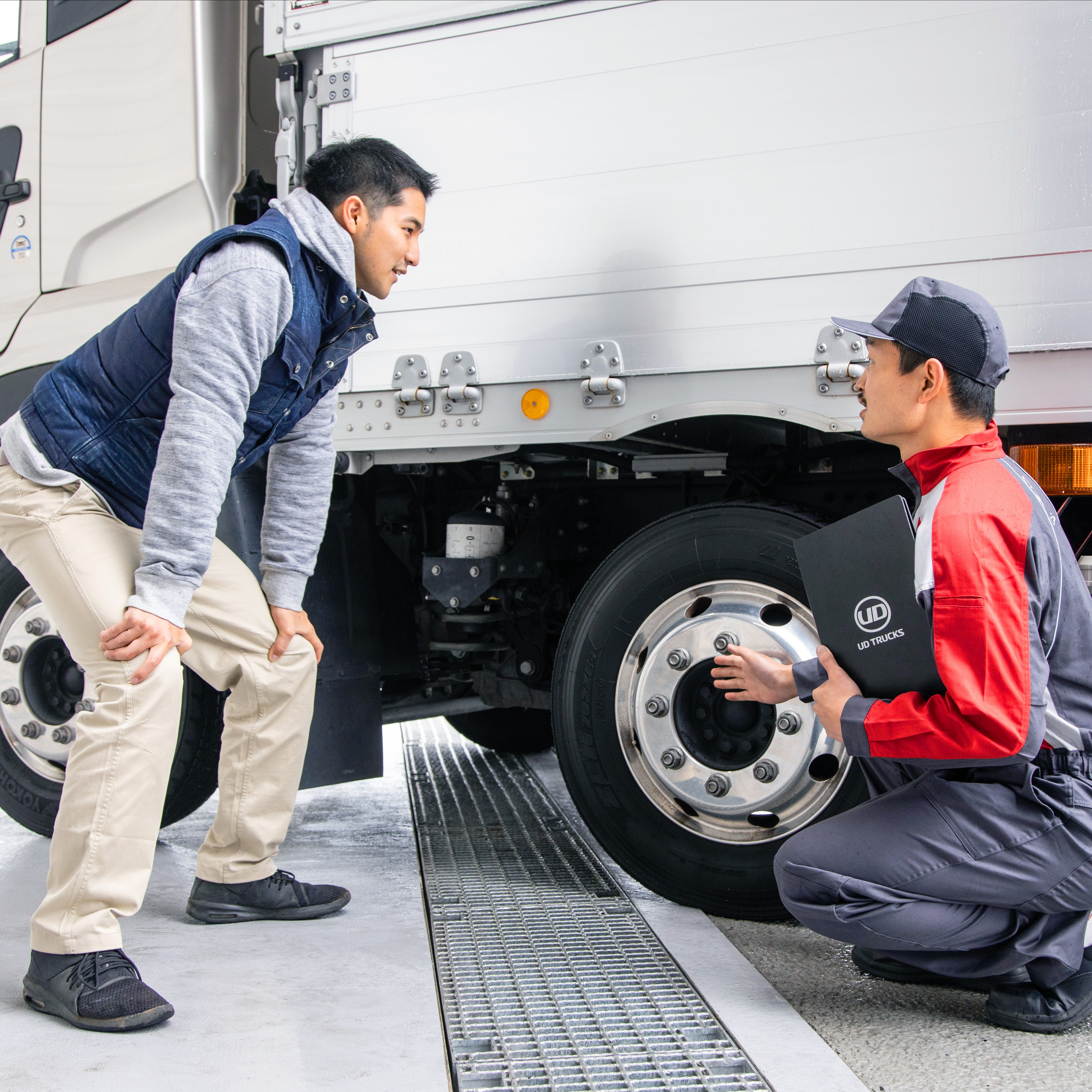 UDディーラーでは、お客様のトラックを常に安心してお使いいただけるよう、車検・定期点検・一般整備の各サービスを提供しています。​