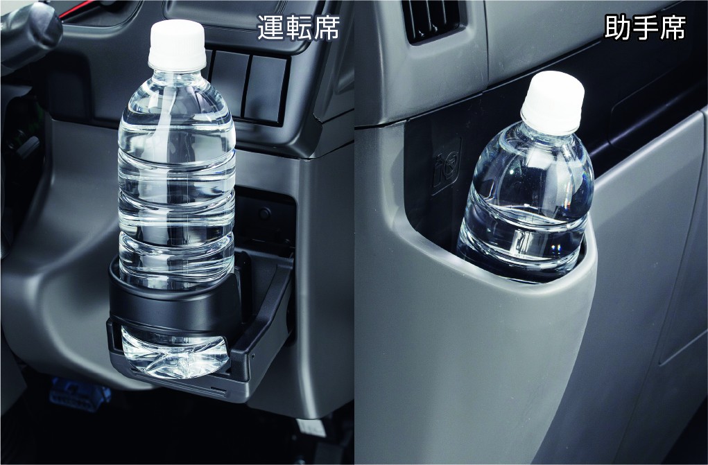 *ダンプ/PTOレバー付車のカップホルダーは、センターポケットに装備されます。